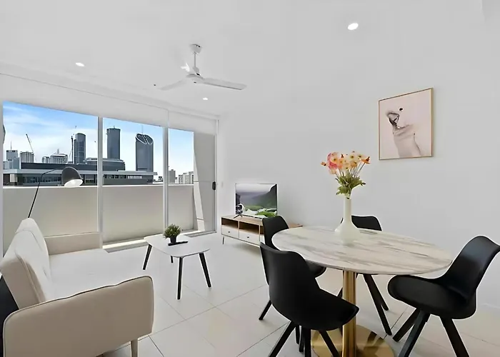 Featuring a private swimming pool, the 52 m² Urban Luxe Retreat, Stylish 1Br In South Brisbane Apartment is right around the corner from TAFE Queensland Brisbane. Guests can make use of Wi-Fi for both business and leisure purposes.